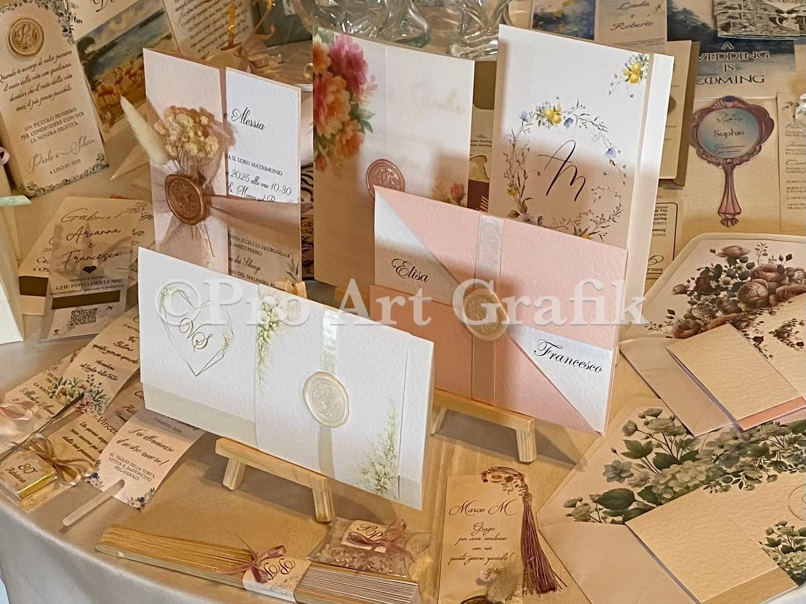 Nel laboratorio artigianale Pro Art Grafik a Vetralla, in provincia di Viterbo, realizziamo partecipazioni di nozze personalizzate e coordinati per matrimonio con un’idea semplice ma importante: rendere speciale ogni dettaglio, con calma, ascolto e un po’ di creatività.
